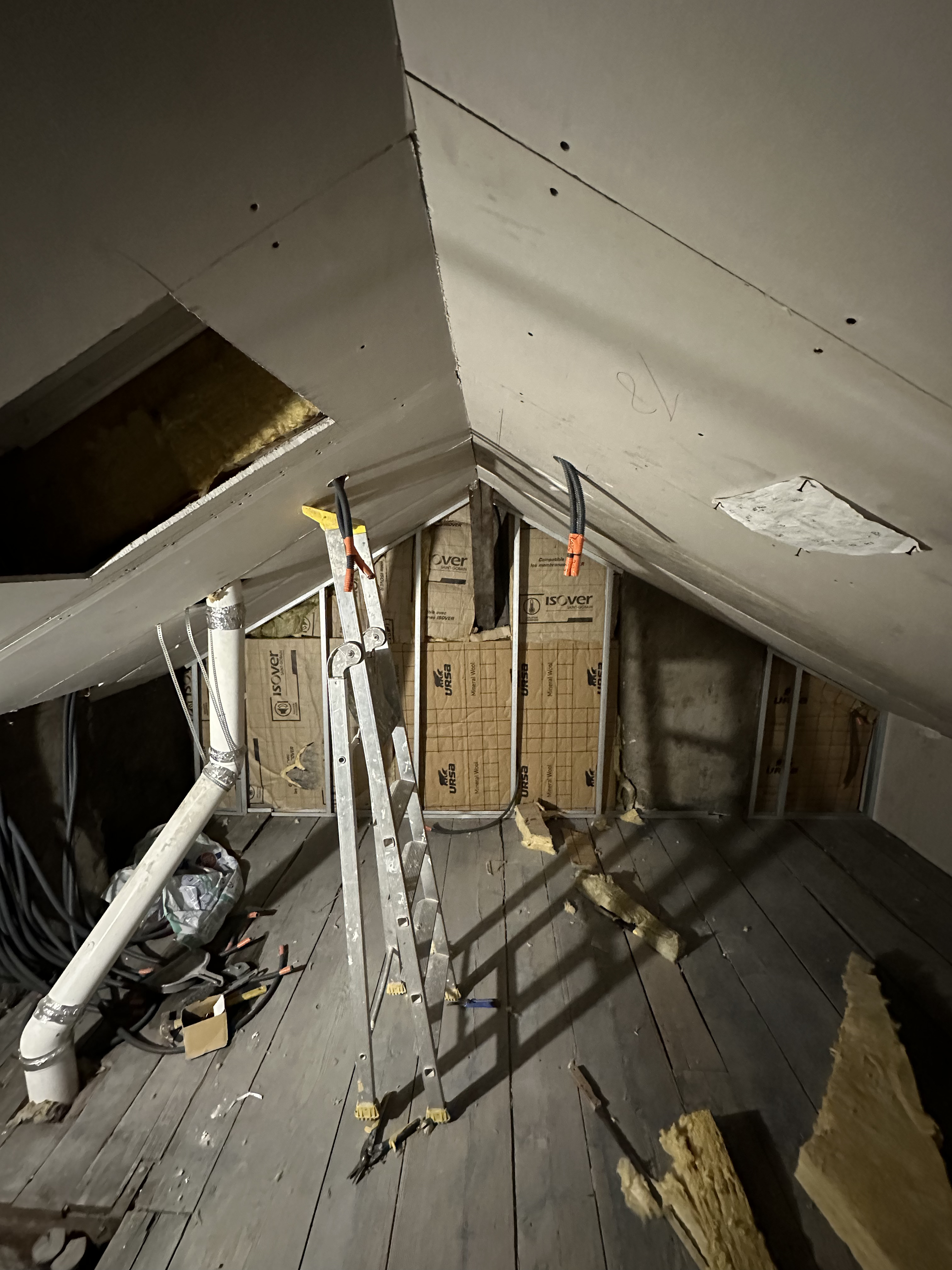 Grenier en cours de rĂ©novation complĂšte pour crĂ©ation d'une nouvelle chambre.Â